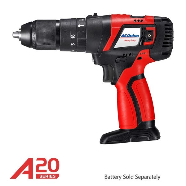 ACDelco A20 BRUSHLESS 20V Li-ion 2-Speed Cordless Drill/Driver Kit, max. 500 in-lbs, 2 Battery Packs, ARD20129 A20 Brushless Compact Series Tools are designed with power and compact size in heart. The family includes drill driver, impact wrenches, impact drivers, and polisher/sander all share a common slim but powerful 20V max. battery platform. The versatility of A20 series makes it the best choice for the work! Brushless Motor (BLDC) is advanced motor technologies which integrates electronics control board and servo system in the motor assembly and replaced mechanical commutator contact ("brush") used in traditional brushed motor design. The brushless motor provides many advantages; * High power-to-weight ratio and precise torque control * High energy efficiency – 50% longer running time and longer life span * Eliminating carbon brush/commutator worn out and replacement hassle * Eliminating sparking and overheat problem FEATURES * Powerful Brushless Motor: max 500 in-lbs torque, long running time & life cycle * 2-speed gearbox & Variable speed trigger for optimum RPM matching application, 0-600 / 0-2,000 RPM * Variable speed trigger with reversible control & electric brake switch * Built-in LED light & battery indicator * Ergonomic design – comforts for long hours work SPECIFICATIONS * Voltage: 20VDC * Chuck Capacity: 1/2" * Max Torque: 500 in-lbs * No Load Speed: 0-600 / 0-2,000 RPM * Tool Weight: 3.03 lbs