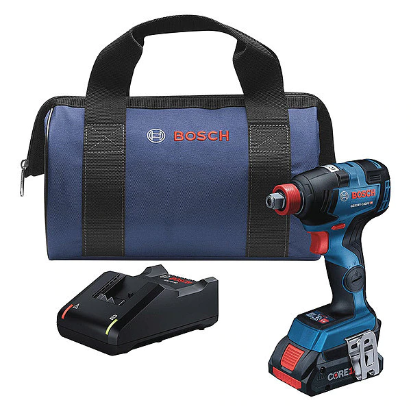 Impact Driver Kit, Drive Size 1/2 in Square, 1/4 in Hex, Drive Configuration Straight, Max. Torque 1,800 in-lb, Voltage 18V DC, Brushless Motor Yes, Free Speed 3,400 RPM, Impact Rated Yes, Impacts per Minute 4,200, Drive Type Worm Drive, Number of Speed Settings 3, Collett 1/4 in Hex, Cordless Tool Kit Contents (1) Bare Tool, (1) Battery, (1) Charger, Number of Batteries Included 1, Battery Capacity (1) 4.0 Ah, Battery Model No. 55EX99, Battery Series CORE18V, Charger Included Yes