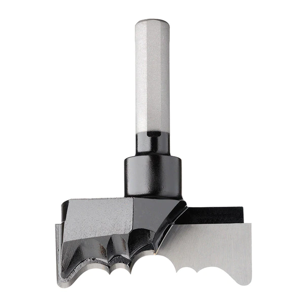 This tool is made of super-strength steel, features 2 carbide-tipped cutting edges, parallel hexagonal shank and right-hand rotation. To be used on standing drilling machine and drilling power tools at low RPM (Max 1800 RPM).