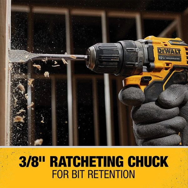 Drill, Voltage 12V DC, Bare Tool, Cordless Tool Battery Type Li-Ion, Brushless Motor Yes, Number of Batteries 0, XTREME Series, No Load RPM 0 to 425/0 to 1500, Chuck Size 3/8 in, Max. Power 250 UWO, Max. Torque Not Specified, Battery Included No, Transmission 2-Speed, Clutch Style Keyless, Handle Type Pistol Grip, Chuck Keyless, Tool Length 5 31/32 in, Tool Weight 1.9 lb, Includes (1) Belt Clip. The XTREME 12V MAX* 3/8 in. Cordless Drill/Driver is compact and performance packed. This drill is ideal for precision applications like drilling small pilot holes and accepts up to 1/2 in. spade bits. At only 5.97 in. long with a 2-speed transmission, it is packed to perform. It also features a bright LED positioned on the foot to illuminate work areas. Batteries and charger sold separately