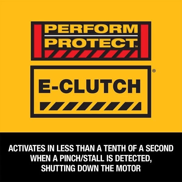 - Safety Features: Anti-Kickback Clutch, Anti-Restart, Brake, Lock-Off Switch