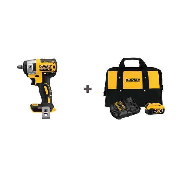 Impact Wrench, Drive Size 3/8 In. square, Max. Torque 150 ft-lb, Voltage 20V, Series 20V Max, Brushless Motor Yes, Handle Type Pistol Grip, Battery Capacity 5.0 AH, Tool Weight 2 lb, Clutch Style Keyless, Features 3 LED lights, Ergonomics, Includes Belt Clip