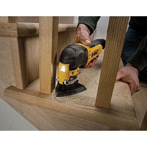 Oscillating MultiTool, 3.0 Amps, Voltage 120, Orbits per Minute 0-22,000, Tool Length 13 In., Tool Weight 3.1 lb., Handle Design In-line, Features QUICK-CHANGE(TM) Accessory System, DUAL-GRIP(TM) Variable Speed Trigger, Bright LED Light, Application For Cutting, Sanding, Standards UL. The DWE315K Oscillating Multi-Tool Kit has a powerful 3 Amp motor with a Dual-GripTM variable speed trigger to help you match speed to your application. This kit includes 29 popular cutting and sanding attachments to help complete a variety of projects. The Quick-ChangeTM accessory system allows you to change blades quickly and easily, and with the universal accessory adaptor, it's compatible with most oscillating tool accessories. The DEWALT Oscillating Tool Guide System allows you to customize the depth or height for accurate repeatability and the bright LED light illuminates dark work spaces.