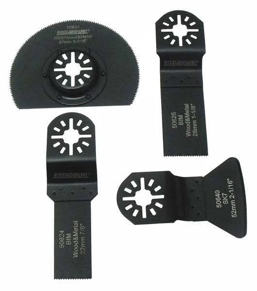 Cutting and Scraping Blade Set, Blade Type Flush Cut, Long Cut, Rigid Scraper, Connection Style Universal Closed-Back, Blade Shape Round, Straight, Blade Width 7/8 in, 1 1/8 in, 2 1/16 in, 3 7/16 in, Overall Length 4 in, Maximum Oscillations per Minute 11,000, Primary Material Application Metal, Plastic, Wood, Materials Cut Particleboard, Plastic, Wood, Cut Style Flush Cut, Direct Fit for Tool Brands Eazypower, Case Included No, Number of Blades 4
