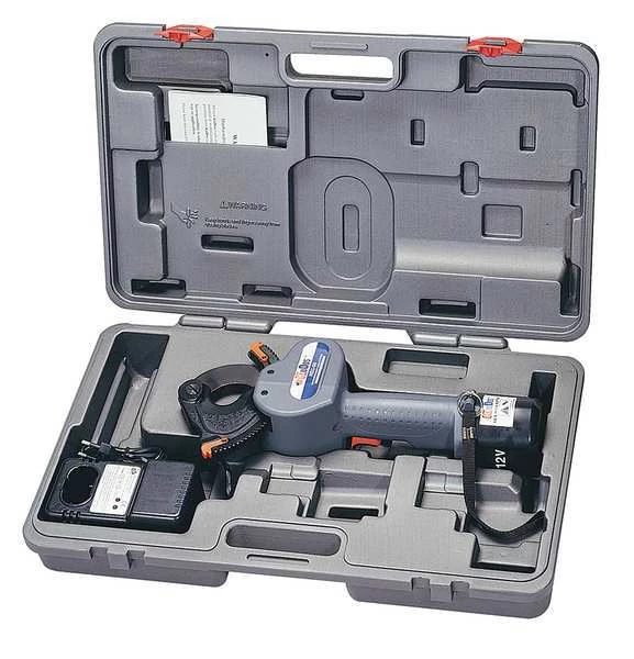 Cordless Cable Cutter, Battery Included, Voltage 12.0 V, Cutting Capacity/Material 750 MCM Aluminum, 750 MCM Copper, Cordless Tool Battery Type NiCd, Tool Length 14 in, Tool Weight 6 lb, Battery Included Mfr. No. 600-010, Battery Pack Replacement Mfr. No. 600-010, Standards UL approved charger, Includes Battery Charger, Impact Resistant Case, Rechargeable 12V Battery