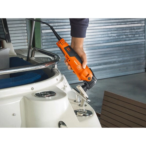 Oscillating Tool, Voltage 120 V AC, Plug Type Two-Prong, Current 3.8 A, Maximum Oscillations per Minute 19,500, Oscillation Angle 3.4 Degrees , Accessory Free Tool Change No, Connection Style FEIN Hexagonal, Tool Length 19 in, Minimum Oscillations per Minute 10,000, Oscillations per Minute 10,000 to 19,500, Speed Setting Variable Speed, Built-In Light No, Accessory Adapter Included FEIN Hexagonal, Fits Accessory Brand FEIN, Cord Length 16 1/2 ft, Power Source Corded, Handle Type Barrel Grip