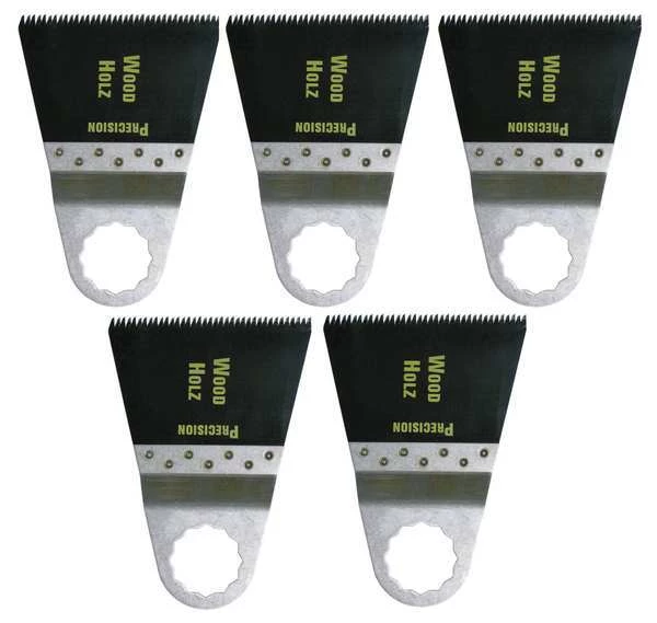 Oscillating Tool Blade, Blade Type Plunge Cut, Connection Style Universal Closed-Back, Blade Shape Straight, Blade Material Steel, Blade Width 2 9/16 in, Blade Length 2 in, Maximum Oscillations per Minute 19,500, Primary Material Application Wood, Materials Cut Wood, Cut Style Straight Cut, Cutting Edge Style Toothed Edge, Direct Fit For Tool Brand Fein (non-Starlock), Number of Pieces 5, Package Quantity 5