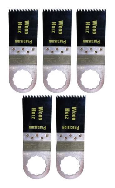 Oscillating Tool Blade, Blade Type Plunge Cut, Connection Style Universal Closed-Back, Blade Shape Straight, Blade Width 1 3/8 in, Blade Length 2 in, Maximum Oscillations per Minute 19,500, Primary Material Application Wood, Materials Cut Wood, Cut Style Straight Cut, Cutting Edge Style Toothed Edge, Direct Fit For Tool Brand Fein (non-Starlock), Number of Pieces 5, Package Quantity 5