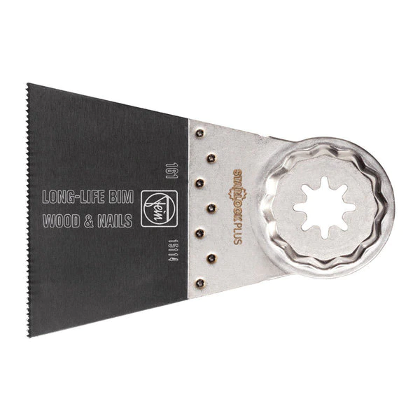 The FEIN StarlockPlus Long-Life E-Cut 161 saw blade has an outstanding service life and excellent work progress.. The Long-Life E-Cut 161 saw blade are extremely robust and makes very clean cuts in drywall plastics and all wood materials. The Long-life blades will cut nails (up to approx. 4 mm dia.). Even if you don’t own a FEIN oscillating multi-tool you can affordably upgrade output by choosing a FEIN Starlock blade. The StarlockPlus mount fits all popular multifunction tools with StarlockPlus and StarlockMax mounts as well as older model FEIN MultiTalent and MultiMasters. FEIN originated the oscillating tool and is proud to offer innovative and durable accessories that achieve ultimate performance.
