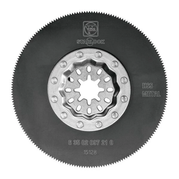The Starlock HSS 097 saw blade is a high-speed steel saw blade designed with teeth for cutting sheet metal up to a maximum thickness of 20 gauge(1 mm). The HSS saw blade can also be used for plastics GFRP wood glazing compound brass and bronze. Offering outstanding cutting speed the HSS saw blade makes clean narrow cuts with ease. The HSS saw blade features the Starlock mounting system and fits every popular multifunction tool on the market. Even if you don’t own a FEIN oscillating multi-tool you can affordably upgrade output by choosing a FEIN Starlock blade. FEIN originated the oscillating tool and is proud to offer innovative and durable accessories that achieve ultimate performance.