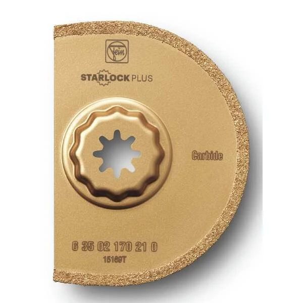 The all NEW FEIN E-Cut Carbide PRO multi-tool blade cuts through what others can’t. With titanium coated bi-metal carbide teeth and a TiN coating that helps the blade last 30x longer than traditional bi-metal blades cutting through difficult materials has never been easier. The stainless steel construction of the Starlock mount and the high quality high strength welds help to deliver optimal power transfer. It's the perfect choice for hard materials such as ferrous metals stainless steel or copper pipes. Can even be used for tempered screws (Spax) and high-strength machine screws. Also ideal for abrasive materials like brick masonry and cement fiber slabs not to mention laminate CFRP and GFRP. Strong cutting performance and cutting quality in all wood materials such as hardwood and particle board.