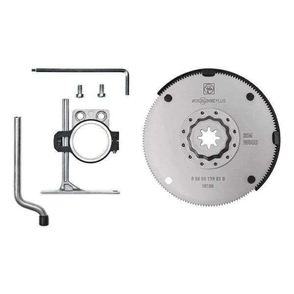 The FEIN StarlockPlus HSS saw blade set is a circular Bi-metal blade and depth stop for long straight cuts in parquet laminate and wood paneling. The small circular style saw blade has a tooth pattern optimized for wood allowing for excellent work progress and a long service life. The depth stop can also be used with many other FEIN accessories for exact depth cuts. Even if you don’t own a FEIN Oscillating multi-tool you can affordably upgrade output by choosing a FEIN Starlock blade. The StarlockPlus mount fits all popular multifunction tools with StarlockPlus and StarlockMax mounts as well as older model FEIN MultiTalent and MultiMasters. FEIN originated the oscillating tool and is proud to offer innovative and durable accessories that achieve ultimate performance.