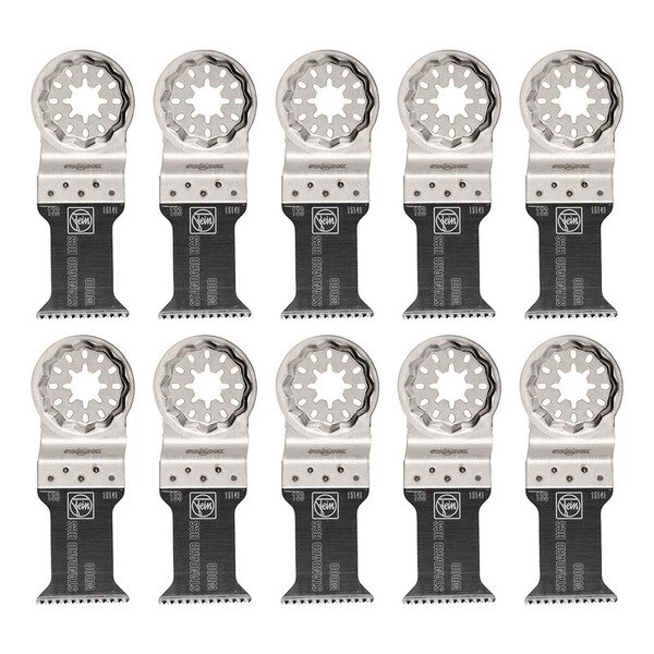 The FEIN Starlock Standard E-Cut 133 saw blade maximizes performance for the most efficient work progress possible. The Standard E-Cut 133 saw blade has good cutting speed and makes very clean cuts in all wood drywall and plastic materials. Featuring the FEIN Starlock mounting system the Standard E-Cut 133 saw blade fits every popular multifunction tool on the market. Even if you don’t own a FEIN oscillating multi-tool you can affordably upgrade output by choosing a FEIN Starlock blade. FEIN originated the oscillating tool and is proud to offer innovative and durable accessories that achieve ultimate performance.