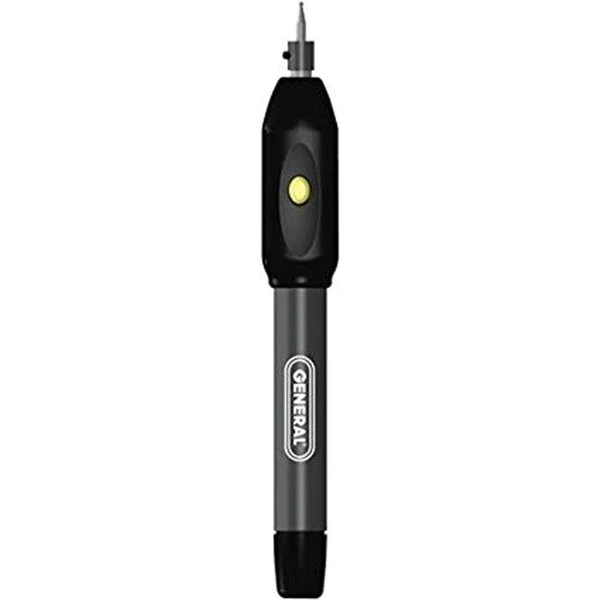 With the new Cordless Precision Engraver (Model #505) [Patent Pending] from General Tools & Instruments users can protect all types of valuables with identifying markings. and even perform delicate personalization of items. This precision specialty tool enables engraving anywhere by anyone–from professional technicians and mechanics to homeowners and DIYers. Designed in-house by General's engineering team. the engraver uses a standard 3/32 in. diamond- tipped engraving bit (included). Its powerful 20.000 RPM motor is powered by just two AAA batteries and enables engraving in glass. metal. ceramic and plastic. An aluminum body offers superior durability while the one-of-a-kind tri-lobe ergonomic grip provides the ultimate in comfort and ease-of-use. Make your everyday life more convenient and simpler with our range of Home Tools that offer the reliability and durability you desire. These tools are designed to cater repair and maintenance tasks in any home. FeaturesDiamond Tip BitPrecision cordless engraving anywhere. Use on metal. plastic. ceramic or glass surfacesProtects all types of valuablesUses standard 3/32" engraving bitAluminum body20.000 RPM motor2 AAA batteries (included)Package Specifications = H: 11.12'' W: 5.12'' D: 1'' Cube: 0.0329 Weight: 3.8oz Weight: 0.23lbs