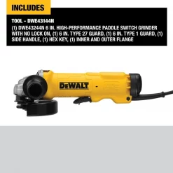 - Dewalt 6 in. (150mm) High Performance Paddle Switch Grinder with No Lock-On