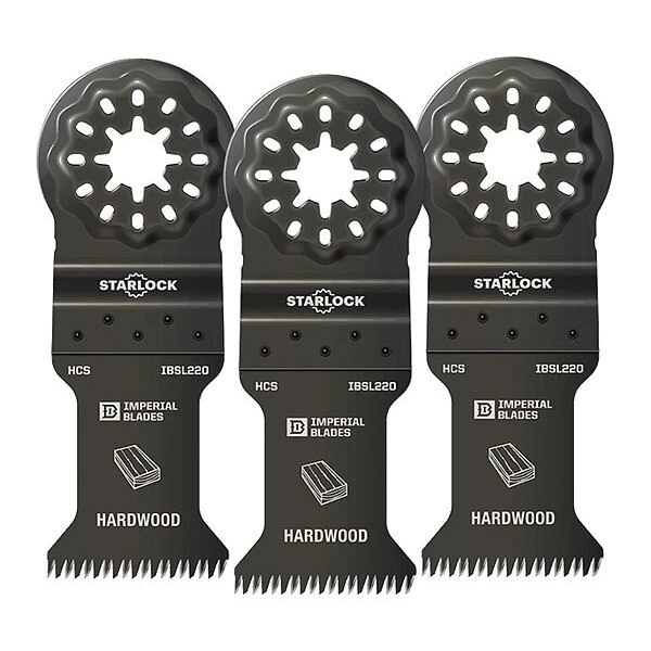 Imperial Blades' StarlockTM 1-3/8" Japanese Tooth Hardwood Blade is composed of high carbon steel (HCS) for medium-duty wood applications. The double row, triple-ground Japanese tooth configuration is designed for up to 2X faster cuts than standard Imperial wood blades. Specifically engineered for precise, clean cuts in Hardwood, Wood, PVC, Drywall and other soft materials. Popular projects include cutting trim, flooring and dowels. Not designed for metal contact. Compatible with StarlockTM multi-tools: Bosch and Fein. Also fits non-Starlock multi-tools: Milwaukee, Ridgid, Makita, Rockwell and more.