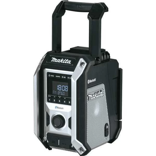 Bluetooth Jobsite Radio, Bare Tool, Voltage 12 V, 18 V, For Use With 12V Max CXT, 14.4V and 18V LXT Lithium-Ion Batteries, Cordless Tool Battery Type Li-Ion, Battery Capacity 2 Ah, 5 Ah, Battery Included No, Features Clock Settings, Dust and Water-Resistant Construction, Elastomer Bumpers and Die-Cast Aluminum Guards, Equipped with Bluetooth(R), Menu Controls to Set FM Mono/Stereo, One Auxiliary Port for MP3 Compatibility, One USB port for Charging Mobile Device, Volume and Snooze
