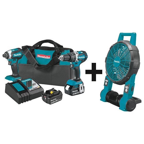 Cordless Combination Kit, Cordless Tools Included Fan, Hammer Drill, Impact Driver, Voltage 18V DC, Power Source Cordless, Number of Tools 3, Battery Capacity (2) 4.0 Ah, Includes (2) Batteries, Charger, Contractor Bag, Tool Brand Makita, Series 18V LXT, Battery Included (2) 33RT43, Mfr. No. BL1840B, Number of Batteries Included 2, Battery Model No. (2) Mfr. No. BL1840B, Battery Series 18V LXT, Charger (1) Mfr. No. DC18RC, Charger Included Yes