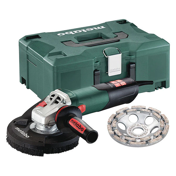 Angle Grinder, Application Grinding and Milling, Current 15 A, Maximum Tool Speed 9,600 RPM, Switch Type Slide, Kit Contents (1) Bare Tool, (1) Diamond Cup Wheel, (1) Extraction Hood, Voltage 120V AC, Wheel Diameter 5 in, Anti-Restart Technology Yes, Anti-Kickback Clutch Type Mechanical, Dust Management None, Accessory Free Tool Change Yes, Anti-Vibration Technology Yes, Brake Type None, Brushless Motor No, Case Included Yes, Cord Length 13 ft, Duty Heavy Duty, Electrical Protection Soft Start