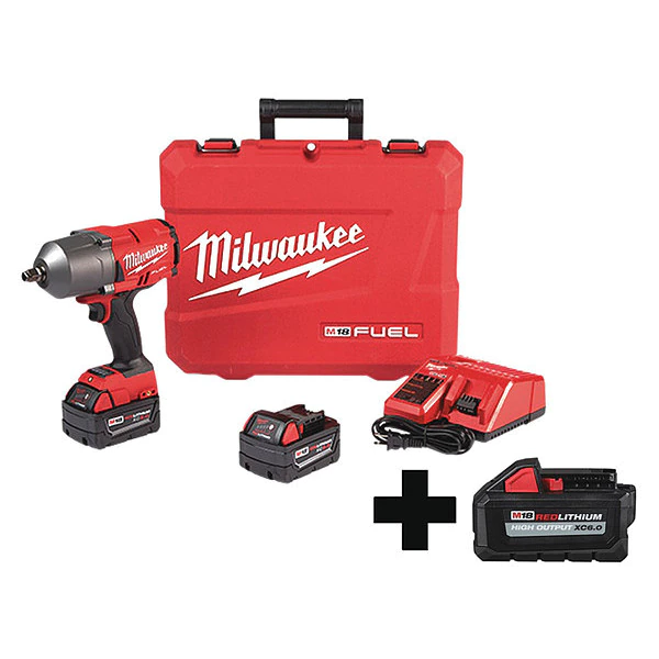 Cordless Impact Wrench Kits, Impact Wrench, Drive Size 1/2 in Square, Drive Configuration Straight, Max. Torque 1,000 ft-lb, Battery Included, Voltage 18V DC, Series M18 FUEL, Cordless Tool Battery Type Li-Ion, Brushless Motor Yes, Anvil Impact Action Mechanical, Max. Blows per Minute 2100, Max. No Load RPM 1700, Cordless, Handle Type Pistol Grip, Battery Capacity (1) 6.0 Ah,(2) 5.0 Ah, Tool Length 8-25/64 In., Tool Weight 5.9 lb, Clutch Style Impact, Battery Included 35GJ99