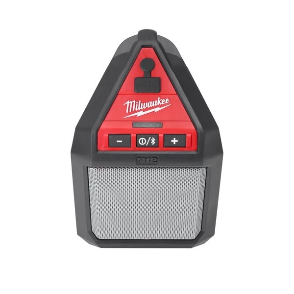 Wireless Jobsite Speaker, Bare Tool, Voltage 12.0 V, For Use With Bluetooth Equipped Portable Electronic Devices, Cordless Tool Battery Type Li-Ion, Battery Included No, Battery Pack Replacement Milwaukee M12 Li-Ion Battery, Charger Input Voltage 120V AC