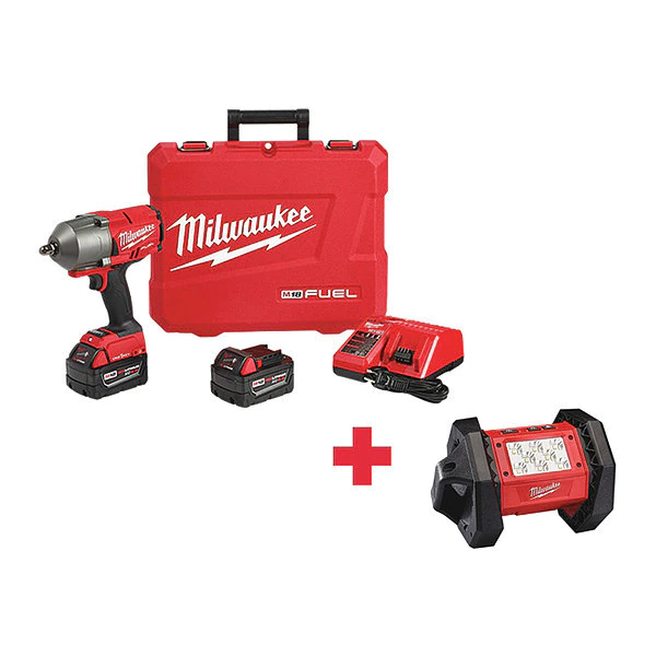 Cordless Impact Wrench Kits, Impact Wrench, Drive Size 1/2 in Square, Drive Configuration Straight, Max. Torque 1,100 ft-lb, Battery Included, Voltage 18V DC, Series M18, Cordless Tool Battery Type Li-Ion, Brushless Motor Yes, Anvil Impact Action Mechanical, Max. Blows per Minute 2400, Max. No Load RPM 1800, Cordless, Handle Type Pistol Grip, Battery Capacity (2) 5.0 Ah, Tool Length 8-13/64 In., Tool Weight 7.2 lb, Clutch Style Impact, Battery Included (2) 35GJ99, Battery Pack Replacement 35GJ99
