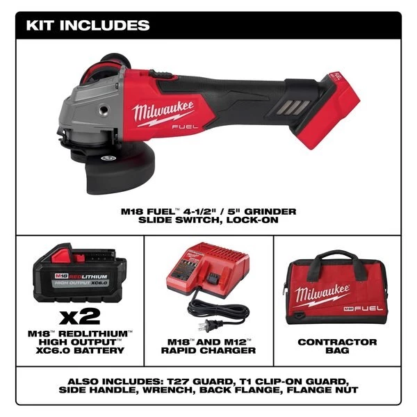 - Includes: Back Flange, Contractor Bag, Flange Nut, Side Handle, T1 Clip-On Guard, T27 Guard, Wrench