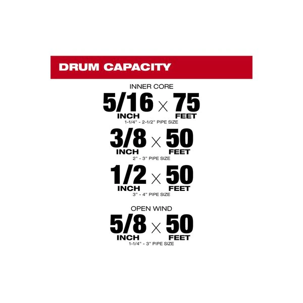 The MILWAUKEE® M18 FUELTM SWITCH PACKTM Sectional Drum System 1/2" Kit is the first drain cleaning solution that combines the benefits of sectional and drum machines, creating the single most versatile and mobile machine on the market. The drain cleaning machine tackles the most frequent challenge of any drain cleaning application – getting the machine onto the job. The SWITCH PACKTM System utilizes a modular design with backpack straps allowing for easy transport to any roof, drain, crawl space or cleanout. The tool-free drum connection allows for quick switching between cable sizes or adding a second drum, for 100' reach down the line. All SWITCH PACKTM drain cleaning drums are fully enclosed providing the best protection against job site mess. The POWERSTATETM Brushless Motor provides more clearing power than corded units for tough jobs in up to 4" drain lines. Built-in REDLINK PLUSTM Intelligence improves control with an integrated drum brake, slowing the machine up to 5X faster than competitor drums. Milwaukee's M18TM REDLITHIUMTM battery pack powers through multiple jobs on a single charge, providing cordless mobility, safety, and power supply to the drain cleaning industry. The 1/2" cable is best for use on 3" – 4" drain lines. Other cable sizes also available. The SWITCH PACKTM is also compatible with the CABLE DRIVETM Assembly (47-53-2774) to automatically feed and retract cable up to 15-20 feet per minute. The CABLE DRIVETM assembly quickly attaches to and swaps between any Milwaukee SWITCH PACKTM Drum with the Mounting Plate (47-53-2773) installed.