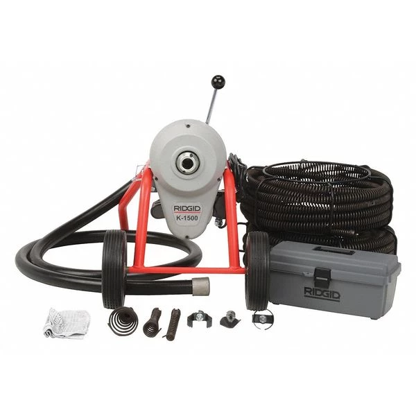 Sectional Drain Cleaning Machine, Drain Line I.D. Size Range 2 in to 8 in, Max. Run 200 ft, HP 3/4, Operating Speed 710 RPM, Corded, Voltage 115V AC, Hz 50/60, Power Cord Length 15 ft, Application For Indoor and Outdoor Jobsites, Standards CSA Certified LR13710, Features GFI Protected