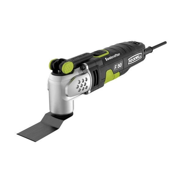 Rockwell F50 Sonicrafter 4 amp Oscillating Tool with 31 Accessories and Carry Bag. Electric oscillating tool boasts a powerful 4.0 Amp motor with constant speed control won’t stall. 33 piece kit includes a variety of blades and sanding attachments for a wide range of applications.