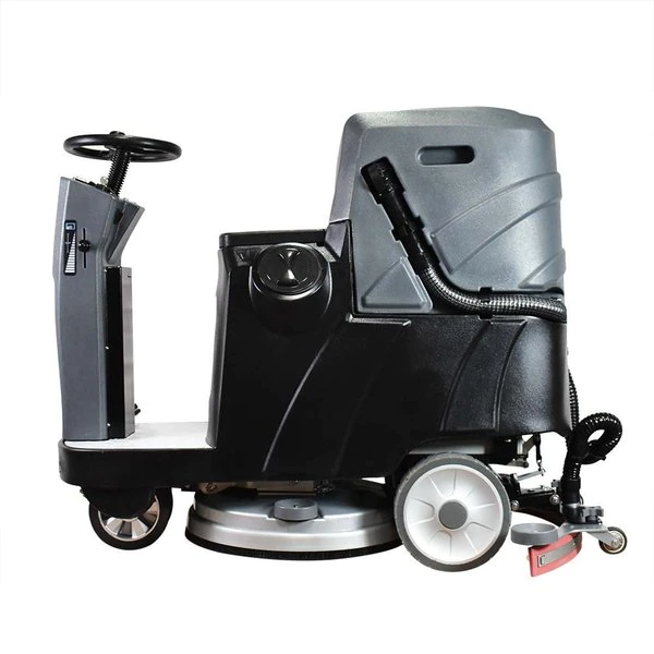 Total Polishing Systems TPSX5 Automatic ride-on floor scrubber offers superior performance for heavy duty cleaning and scrubbing applications. Rotationally molded polyethylene housing is corrosion and impact resistant. Powered by a 1.34HP brush motor that offers 200 RPM. Variable speed control transaxle drive; forward and reverse drive. Features large capacity solution and recovery tanks for low maintenance. Includes heavy duty cast aluminum squeegee assembly and two 17" decks (total of 19" cleaning path). 19" scrubber features 40-gallon solution and 45-gallon recovery tank. Features bright LED headlight and diamond tread platform for added safety. Provides 60,170 sq. ft. per hour coverage. Features a battery energy management system with digital controller for longer run time. Includes three 12V batteries with 4.5 hr. run time per charge. The exclusive soft start technology helps extend the life of the floor scrubber. Maximum weight capacity is 660 lbs. Set of squeegee blades and pad drivers are included.