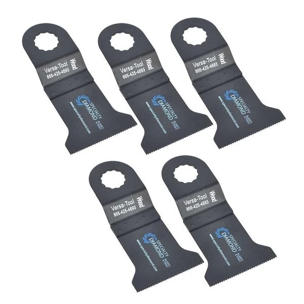 Versa Tool SB5A 45mm Standard 'E' Cut Wood and Plastic Multi-Tool Saw Blades 5/Pack Fits Fein Multimaster, Rockwell, Sonicrafter, Makita Oscillating Tools.The 45mm Standard 'E' Cut HCS saw blade is Ideal for flush cuts and cut-outs in hard, nonmetallic materials such as hardwoods, plywood and particle board this wood blade can also tackle materials such as plastics, fiberglass and Plexiglas. The Versa-Tool HCS blade is manufactured with a durable 19 TPI cutting edge that resists wear and cuts quickly.