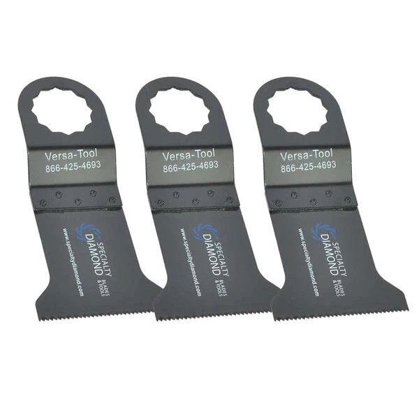 Versa Tool FB3A-D 45mm Wood / Plastic Multi-Tool Saw 3 Blade Pack Fits Fein Supercut Oscillating Tools.The 45mm HCS saw blade is Ideal for flush cuts and cut-outs in hard, nonmetallic materials such as hardwoods, plywood and particle board this wood blade can also tackle materials such as plastics, fiberglass and Plexiglas. The Versa-Tool HCS blade is manufactured with a durable 19 TPI cutting edge that resists wear and cuts quickly.