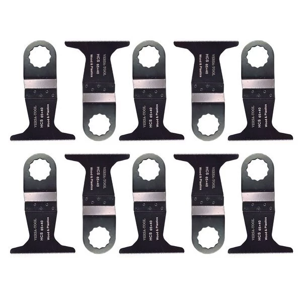 Versa Tool FB10D 65mm HCS Multi-Tool Saw Blades 10/Pack Fits Fein Supercut Oscillating Tools.Ideal for flush cuts and cut-outs in hard, non metallic materials such as hardwoods, plywood and particle board this wood blade can also tackle materials such as plastics, fiberglass and Plexiglas. Designed to saw into corners and cut angles with precision the wood blade can be utilized for even the toughest tasks.