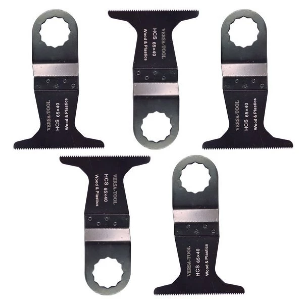 Versa Tool FB5D 65mm HCS Multi-Tool Saw Blades 5/Pack Fits Fein Supercut Oscillating Tools.Ideal for flush cuts and cut-outs in hard, non metallic materials such as hardwoods, plywood and particle board this wood blade can also tackle materials such as plastics, fiberglass and Plexiglas. Designed to saw into corners and cut angles with precision the wood blade can be utilized for even the toughest tasks.