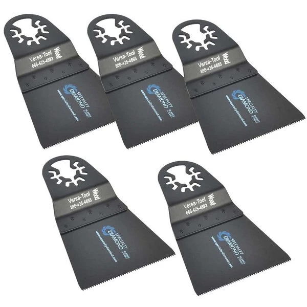 Versa Tool AB5D 65mm HCS Wood Cutting Multi-Tool Saw Blades 5/Pk Fits Fein Multimaster, Dremel, Bosch, Craftsman, Ridgid Oscillating Tools.Ideal for flush cuts and cut-outs in hard, non metallic materials such as hardwoods, plywood and particle board this wood blade can also tackle materials such as plastics, fiberglass and Plexiglas. Designed to saw into corners and cut angles with precision the wood blade can be utilized for even the toughest tasks.