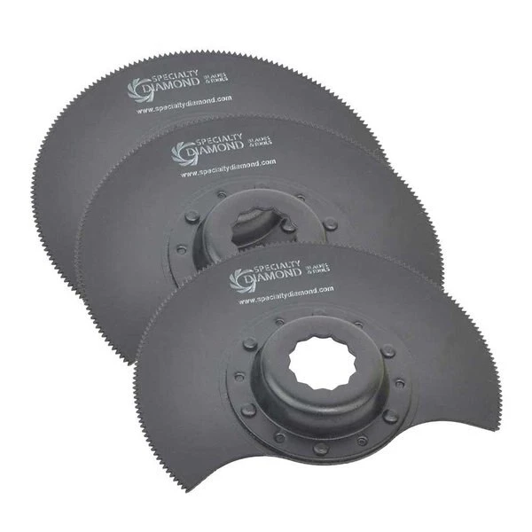Versa Tool SB3J-D 80mm HSS Semi-Circular Multi-Tool Saw 3 Blade Pack, 9mm Offset Mount Fits Fein Multimaster, Rockwell, Sonicrafter, Makita Oscillating Tools.Made from high speed steel, the 80mm wood and metal cutting blade is ideal for making precise cuts in nail embedded wood, drywall and plaster material. Applications include cutting openings in flooring for venting, repairing damaged flooring and cutting openings for electrical boxes. The blade can also be used for cutting metal materials such as copper, tin, aluminum and nails.