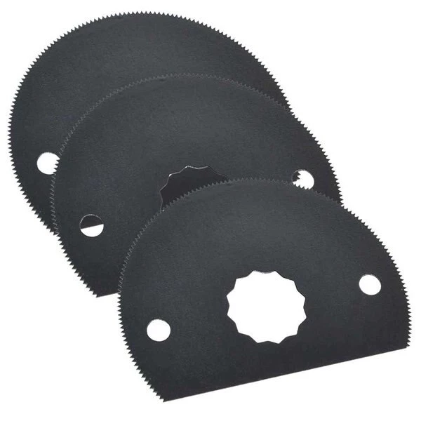 Versa Tool FB3I-D 80mm HSS Semi-Circular Multi-Tool Saw 3 Blade Pack Fits Fein Supercut Oscillating Tools.Made from high speed steel, the 80mm wood and metal cutting blade is ideal for making precise cuts in nail embedded wood, drywall and plaster material. Applications include cutting openings in flooring for venting, repairing damaged flooring and cutting openings for electrical boxes. The blade can also be used for cutting metal materials such as copper, tin, aluminum and nails.