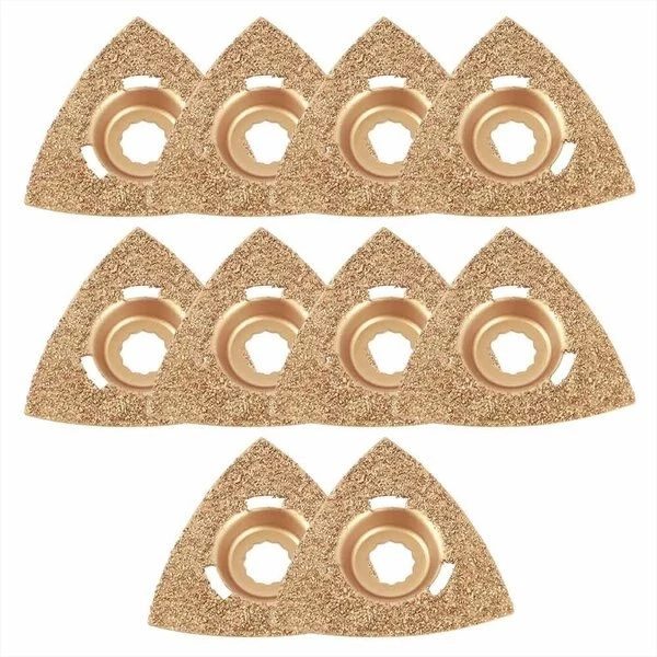 Versa Tool SB10L Versa Tool SB5L 80mm Triangular Carbide RASP, 8mm Offset Mount Fits Fein Multimaster, Rockwell, Sonicrafter, Makita Oscillating Tools – 10/Pack.Made with brazed shards of abrasive carbide material, this triangular rasp will effectively remove and grind the toughest materials. The triangular design allows this tool to work in corners and the carbide design allows this product to grind materials such as concrete and brick. Great for removing thin-set and mortar material during tile repair projects. Flush cut arbor design for ease of use in demanding situations.