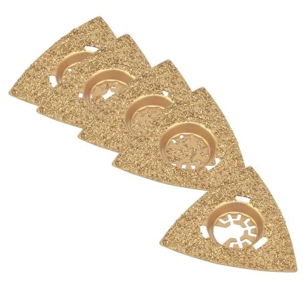 Versa Tool AB5L 80mm Triangular Carbide RASP, 8mm Offset Mount Fits Fein Multimaster, Dremel, Bosch, Craftsman, Ridgid Oscillating Tools, 5/Pack.Made with brazed shards of abrasive carbide material, this triangular rasp will effectively remove and grind the toughest materials. The triangular design allows this tool to work in corners and the carbide design allows this product to grind materials such as concrete and brick. Great for removing thin-set and mortar material during tile repair projects. Flush cut arbor design for ease of use in demanding situations.